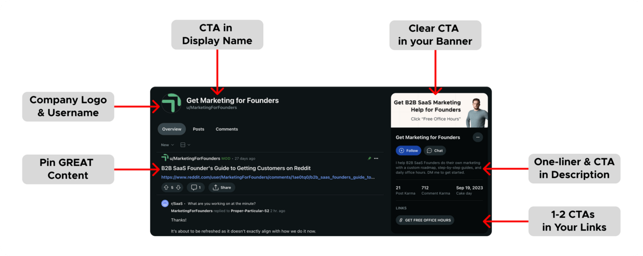 If you’re on Reddit to get leads for your B2B SaaS or plan to start soon, it is worth 5-10 minutes of your time to optimize your profile.
